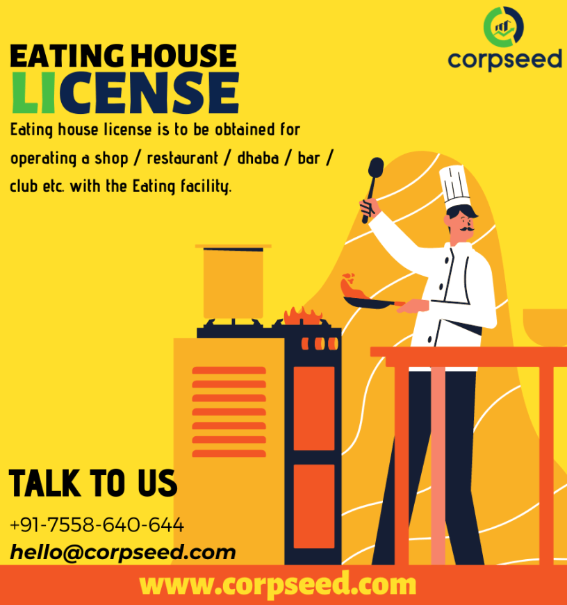 Eating House means – any place to which the public are admitted, and where any kind of food or drink is supplied for consumption and this license must be acquired from the licensing police commissioner of the city in which you wish to operate your business. One can apply for an eating house license here.
